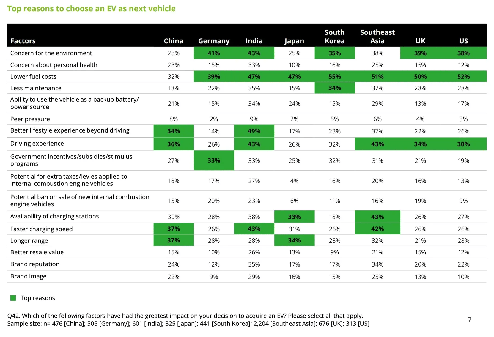 China: Schnelleres Laden (37%), höhere Reichweite (37%), Fahrerlebnis (36%) oder einfach als Lifestyle-Asset (34%)